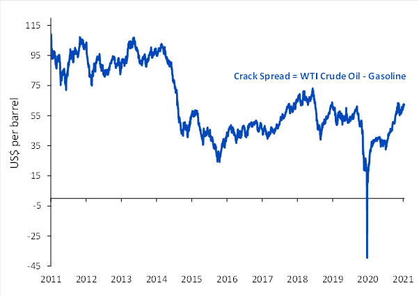L’interruzione dell’oleodotto Colonial potrebbe favorire i prezzi della benzina in un momento di picco della domanda mentre ci avviciniamo all’estate, periodo in cui la domanda di benzina è tradizionalmente ai suoi massimi. Il consumo di carburanti tra cui la benzina e i carburanti per aerei è inoltre in aumento con il ritorno al lavoro dei consumatori dopo la revocazione delle restrizioni alla mobilità. Le scorte di benzina hanno oscillato vicino al minimo di quattro mesi da marzo, mentre le scorte di diesel sono appena sopra la media di cinque anni per questo periodo dell’anno. Data l’incertezza intorno al quadro legale e l’interruzione delle infrastrutture topiche in un momento di domanda crescente, i prezzi della benzina potrebbero rimanere elevati per un lungo periodo.