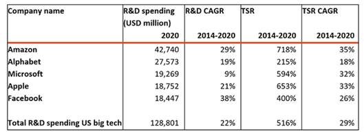 Tabella: Totale spesa R&D US “big tech” e ritorni totali shareholder