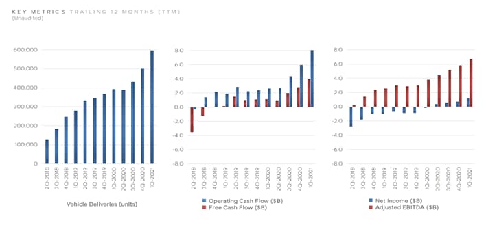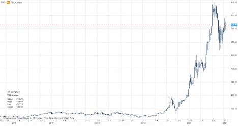 Abbiamo ricevuto i guadagni del Q1 di Tesla, una delle aziende più amate e odiate al mondo, che mostra un fatturato di 10,4 miliardi di dollari in linea con le stime e un EPS rettificato di 0,93 dollari contro 0,80 dollari. L’azienda dice che si aspetta di realizzare una crescita del 50% nella consegna di veicoli nel 2021; mentre il consensus si aspetta un aumento delle entrate del 57% a/a nel 2021. Questo obiettivo di entrate potrebbe essere difficile se le consegne sono in crescita del 50%, dato che il prezzo medio di vendita (ASP) è diminuito del 13% a/a, con un a forte pressione in diversi mercati,particolarmente in Cina. Il free cash flow è di 293 milioni di dollari rispetto alla stima di $-83mn.La società ha iniziato la produzione della nuova Model S e si aspetta che la produzione abbia inizio nella sua nuova Gigafactory di Berlino nel 2021. Anche il business solare è aumentato nel quatrimestre con un totale di 92 MW installati nel Q1 2021 rispetto a 86 MW nel Q4 2020.