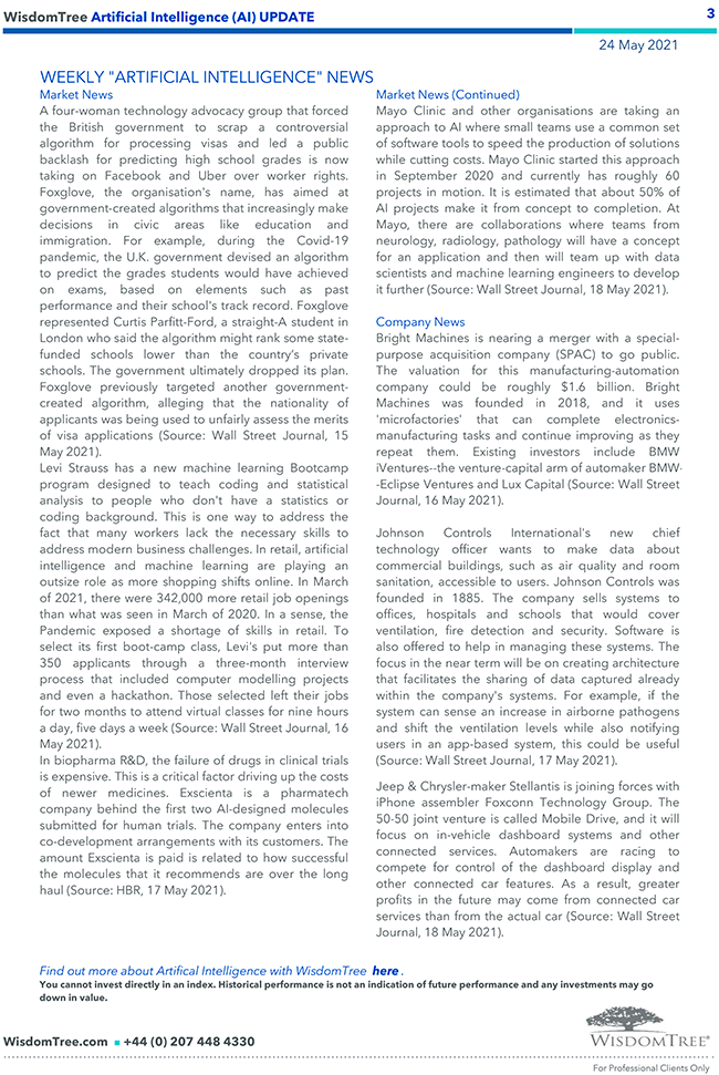 WisdomTree – Weekly “Artificial Intelligence (AI)” Update – 24 mag 2021