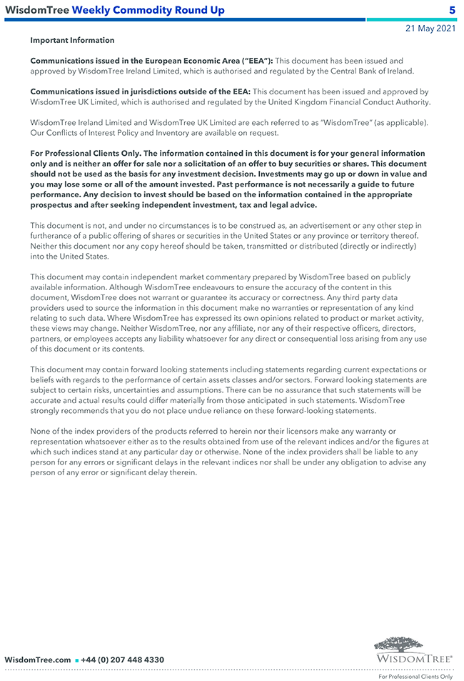 WisdomTree – Weekly “Commodity” Round Up – 21 mag 2021