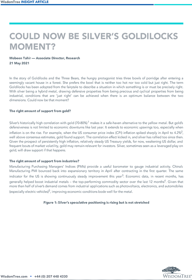 WisdomTree – What’s hot – 21 May 2021 – Could now be silver’s goldilocks moment?