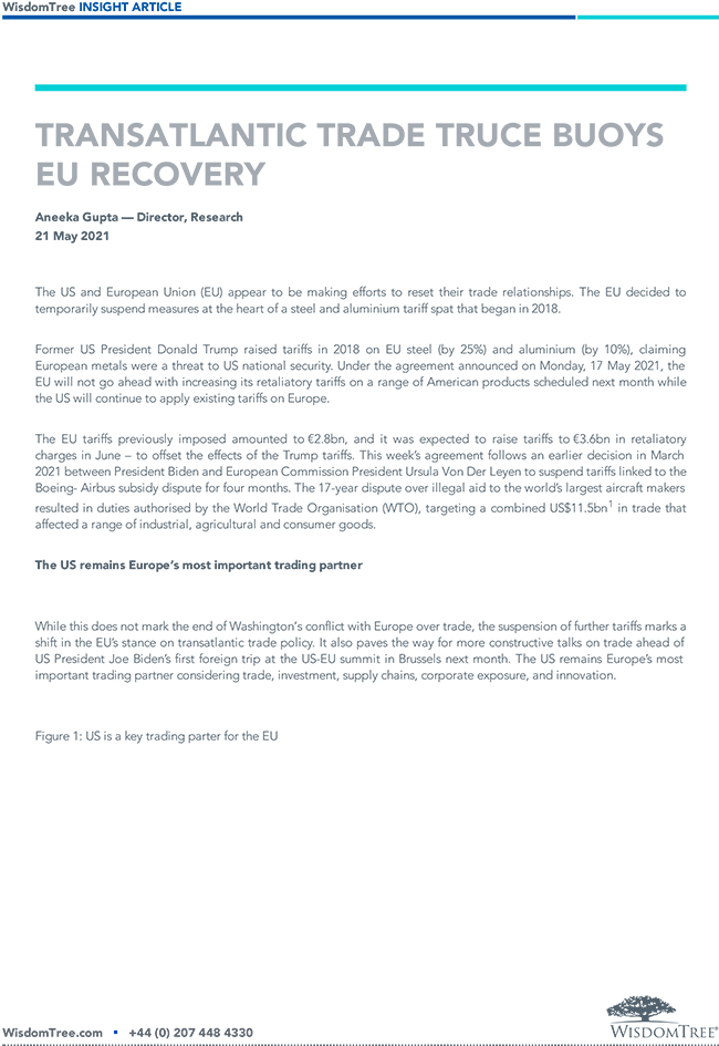 WisdomTree – What’s hot – 21 May 2021 – Transatlantic trade truce buoys EU Recovery