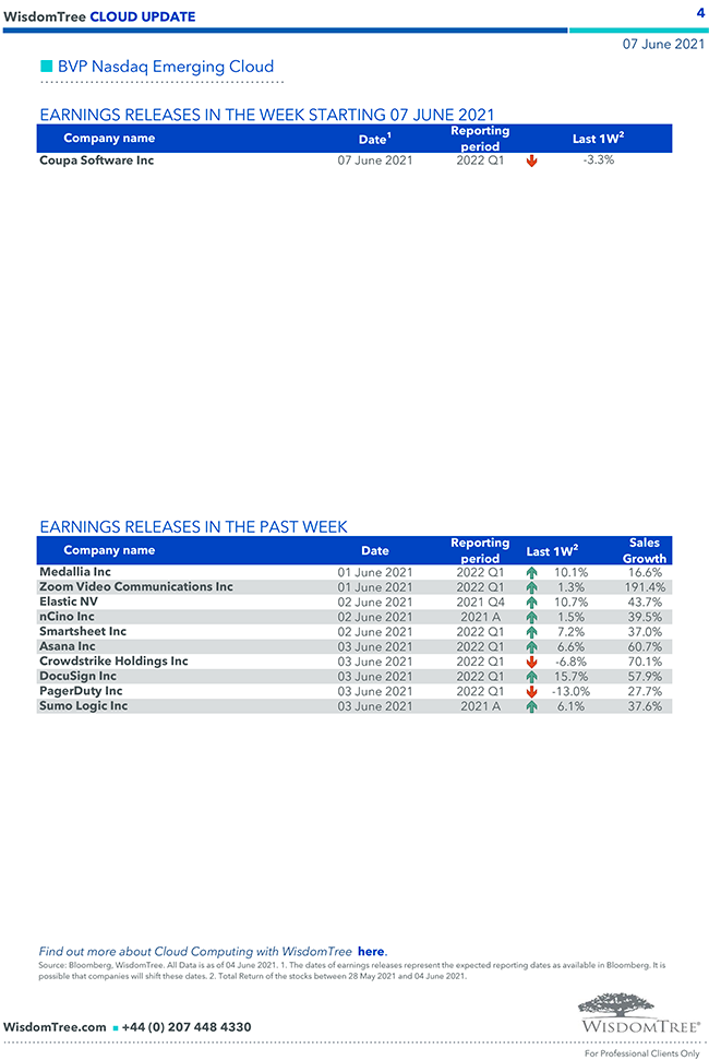 WisdomTree – Weekly “Cloud” Update – 07 giu 2021