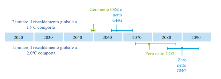 Figura 1: Tempistica globale per arrivare allo zero netto delle emissioni
