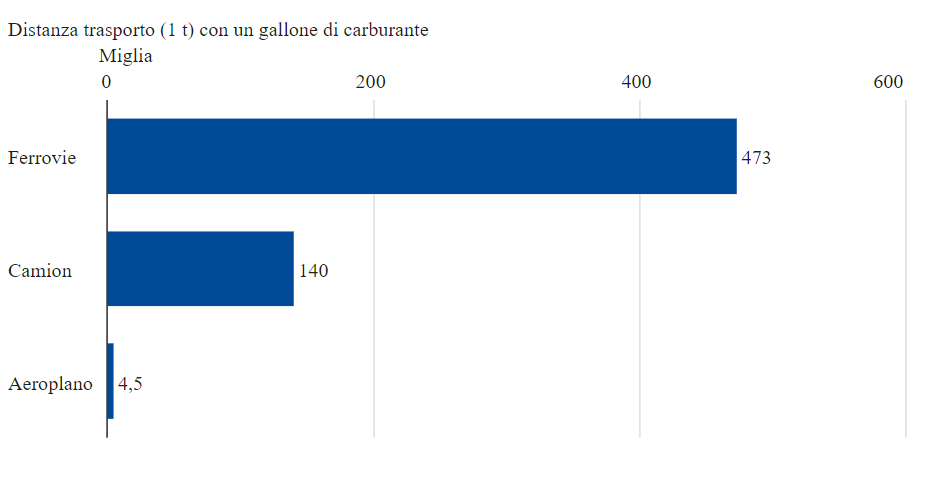 Figura 2: Un treno copre distanze maggiori per unità di combustibile
