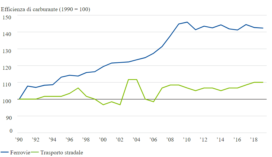 Figura 3: Efficienza di combustibile dei treni rispetto ai camion