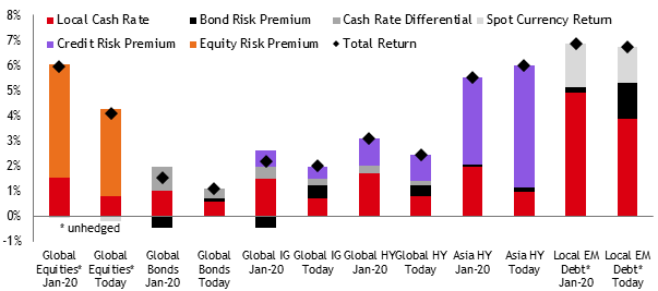 Gli investitori dovrebbero cercare di avvicinarsi il più possibile a flussi di cassa reali e protetti dall’inflazione. Il debito infrastrutturale è un ottimo candidato in questo senso e ha offerto rendimenti storici discreti, oggi offre uno spread più elevato rispetto al credito globale e presenta un profilo di perdite più favorevole. Anche le materie prime come il rame, altri minerali chiave (uranio, metalli delle terre rare) o i carbon offset sembrano interessanti. Un’allocation più convenzionale consisterebbe nel considerare le obbligazioni asiatiche come un sostituto delle obbligazioni globali o il credito high yeild asiatico, che gode di spread più elevati e di tassi di default ridotti.