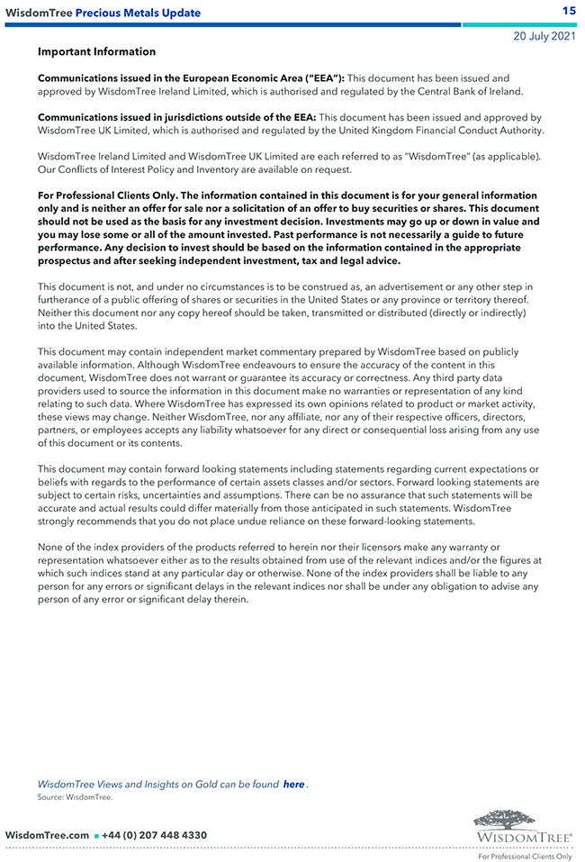 WisdomTree – “ Precious Metals” Update – 20 lug 2021