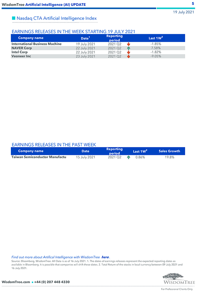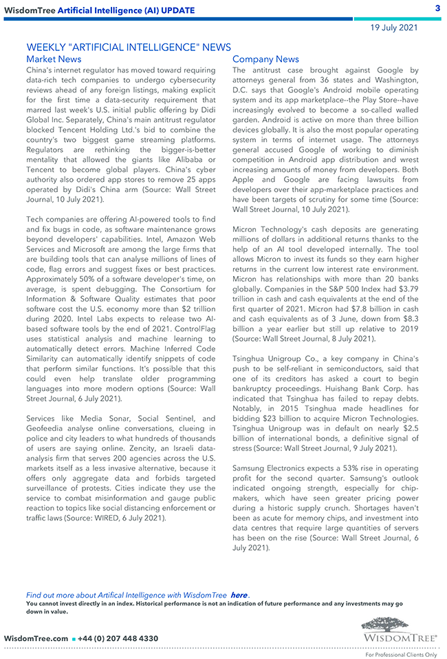 WisdomTree – Weekly “Artificial Intelligence (AI)” Update – 19 lug 2021