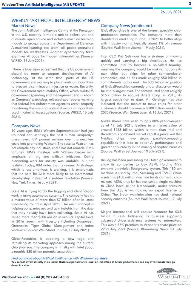 WisdomTree – Weekly “Artificial Intelligence (AI)” Update – 26 lug 2021