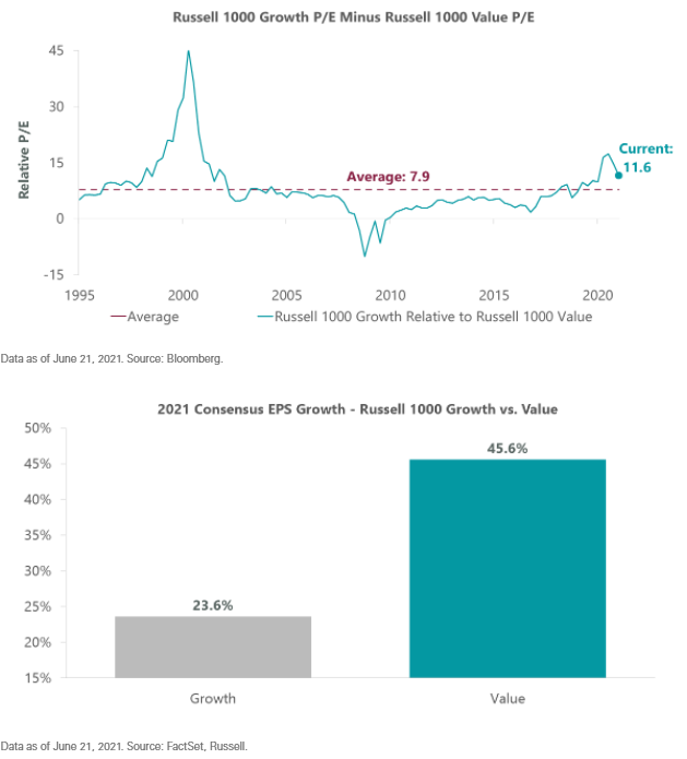 Nella prima metà dell’anno la crescita dei mercati azionari statunitensi è stata superiore al dieci percento, e la ripresa è proseguita con forza dopo il mercato ribassista determinato dal COVID-19 all’inizio del 2020. Nel secondo trimestre sono tornati alla ribalta i titoli growth, ma con le riaperture progressive dell’economia quelli value hanno mantenuto il vantaggio di performance di cui avevano goduto dall’inizio dell’anno.