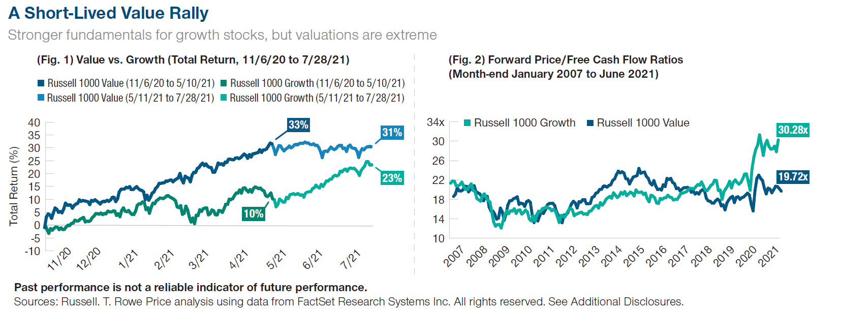 In particolare, la pandemia ha rafforzato alcuni trend tecnologici, tra cui il commercio retail online, i social media, lo streaming video e il cloud computing, e le ultime tendenze, come la spinta verso le energie rinnovabili, potrebbero fornire ulteriori venti in coda. Tuttavia, con queste importanti aspettative, le valutazioni dei titoli growth sono state spinte a livelli estremi rispetto ai titoli value, lasciando poco margine di errore in caso di risultati deludenti.
