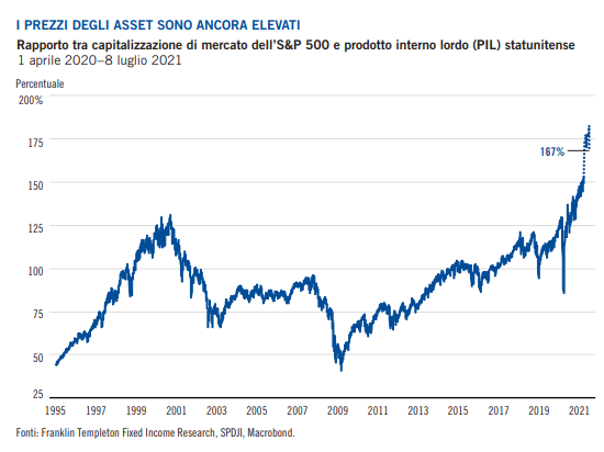 Qual è l’elemento che non torna, in questo caso? L’inflazione. In questo scenario classico di surriscaldamento, le politiche fiscali e monetarie accomodanti alimentano un’inflazione sostenuta. Non (necessariamente) un ritorno agli anni Settanta, ma un 3%-5% persistente che si radica nei salari e nei prezzi sembra piuttosto realistico. Ciò legherà le mani alla Fed: quanto più aspetta a invertire il corso, tanto più drastico sarà a suo tempo l’irrigidimento. I tassi di mercato saliranno più rapidamente della Fed, penalizzando l’esposizione alla duration nel reddito fisso. I mercati azionari inizialmente dovrebbero beneficiare di un buon supporto, ma diventeranno poi sempre più nervosi considerando che la Fed si prepara a un irrigidimento.