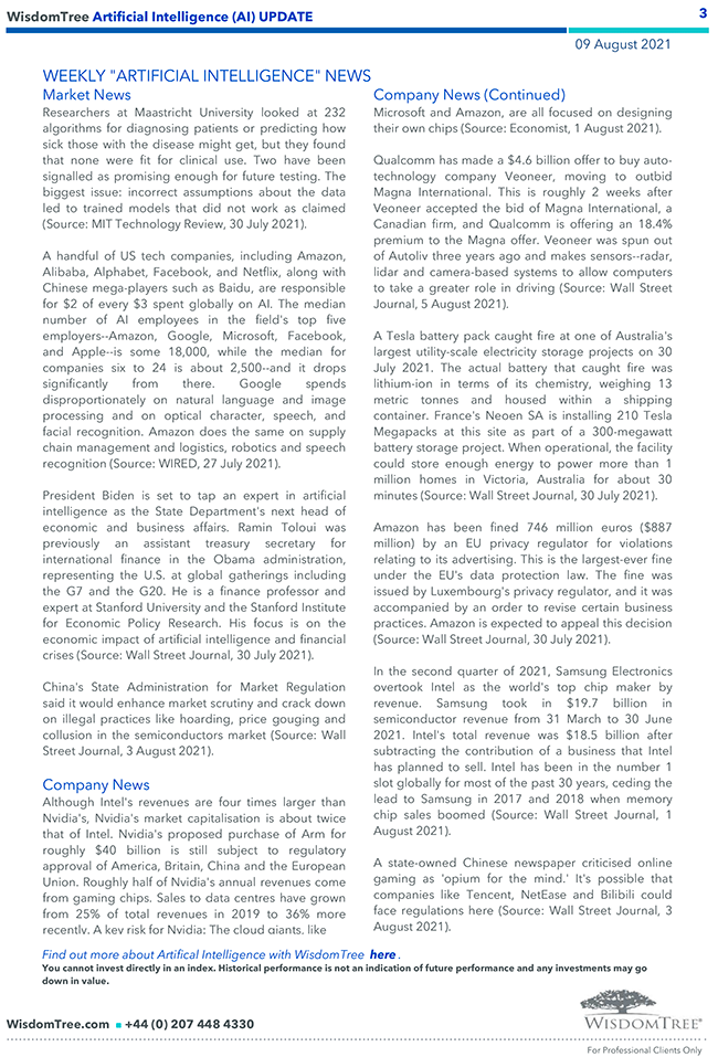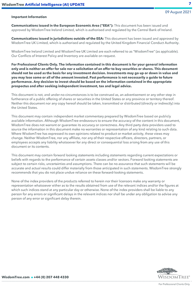 WisdomTree – Weekly “Artificial Intelligence (AI)” Update – 09 ago 2021