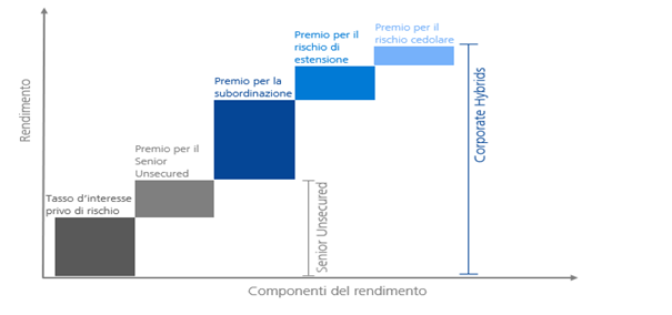 Figura 1: Componenti di rendimento delle obbligazioni societarie ibride