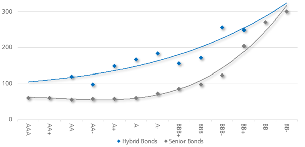 In caso di fallimento, gli investitori di queste obbligazioni verrebbero rimborsati solo dopo gli altri creditori. A differenza dei titoli di debito senior, le obbligazioni ibride hanno un rating inferiore di circa due livelli a causa della subordinazione. In cambio, i rendimenti delle obbligazioni ibride sono più elevati rispetto ai titoli di debito senior.