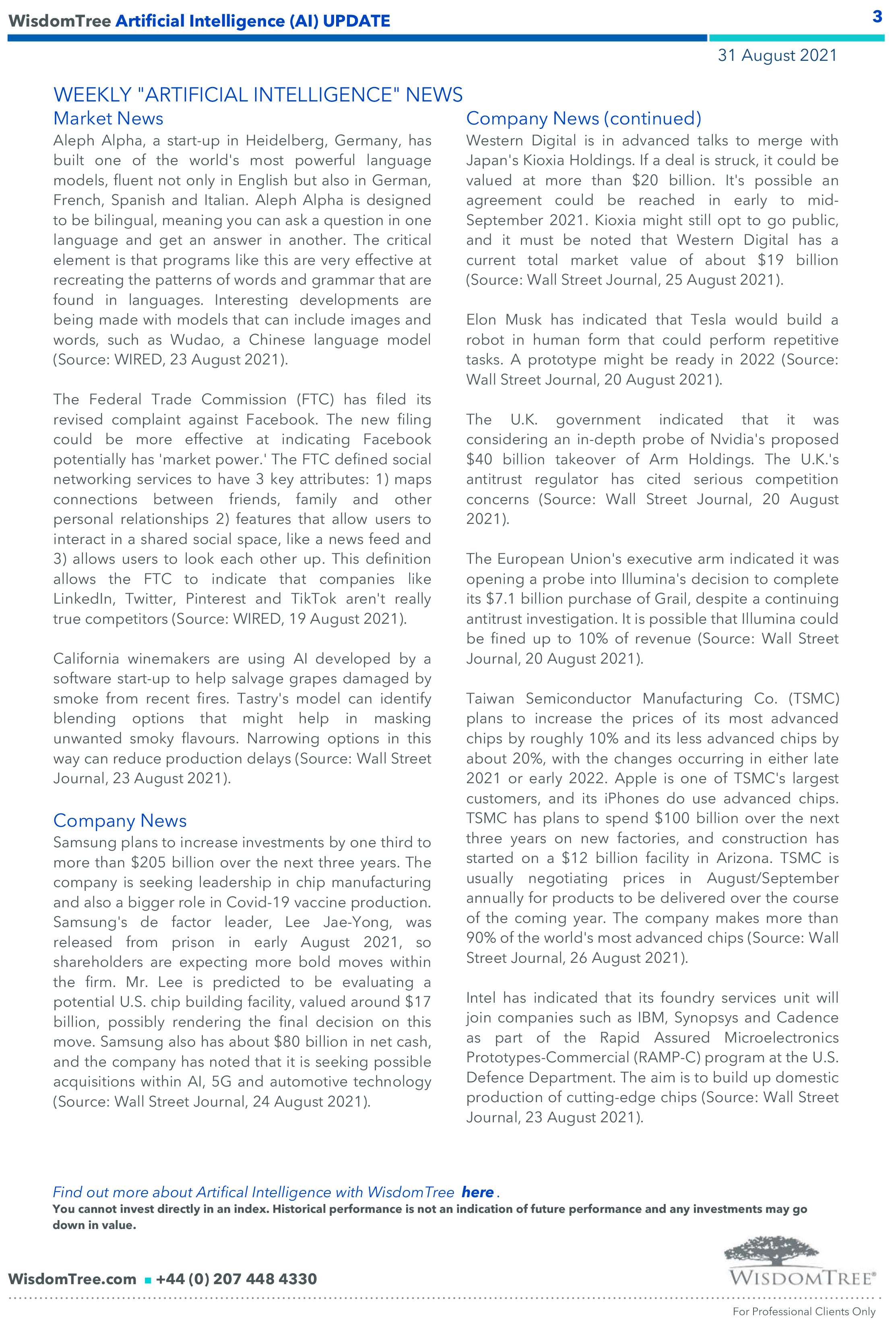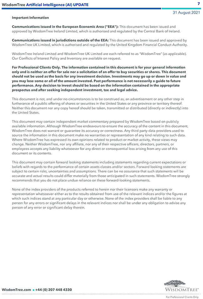 WisdomTree – Weekly “Artificial Intelligence (AI)” Update – 31 ago 2021