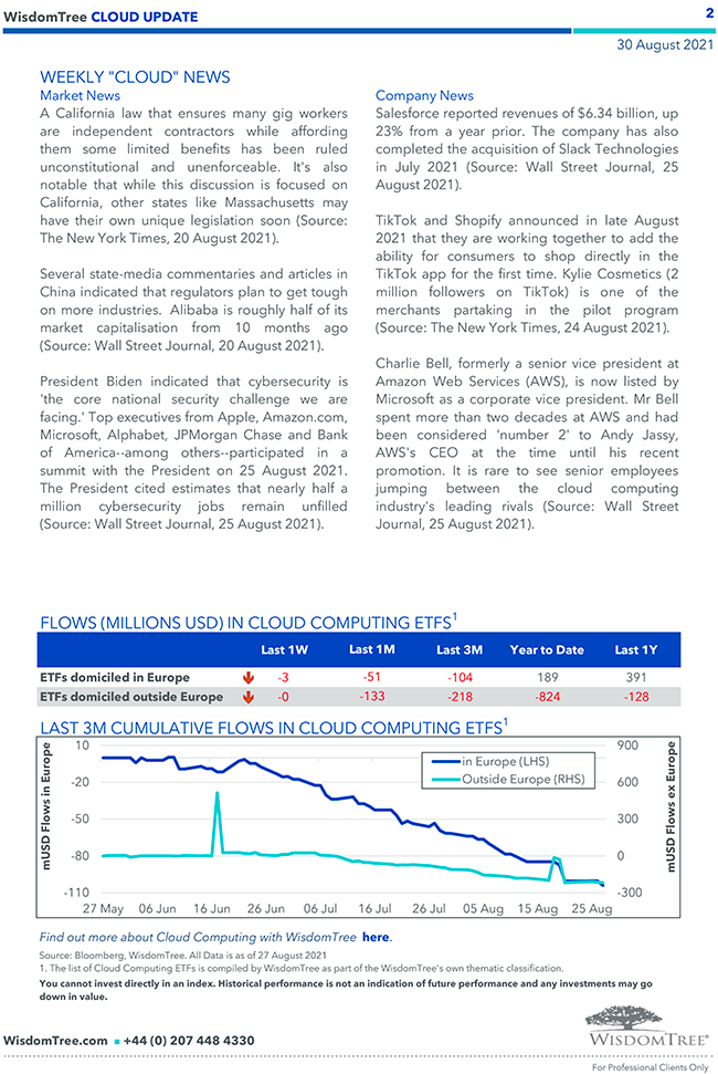 WisdomTree – Weekly “Cloud” Update – 30 ago 2021