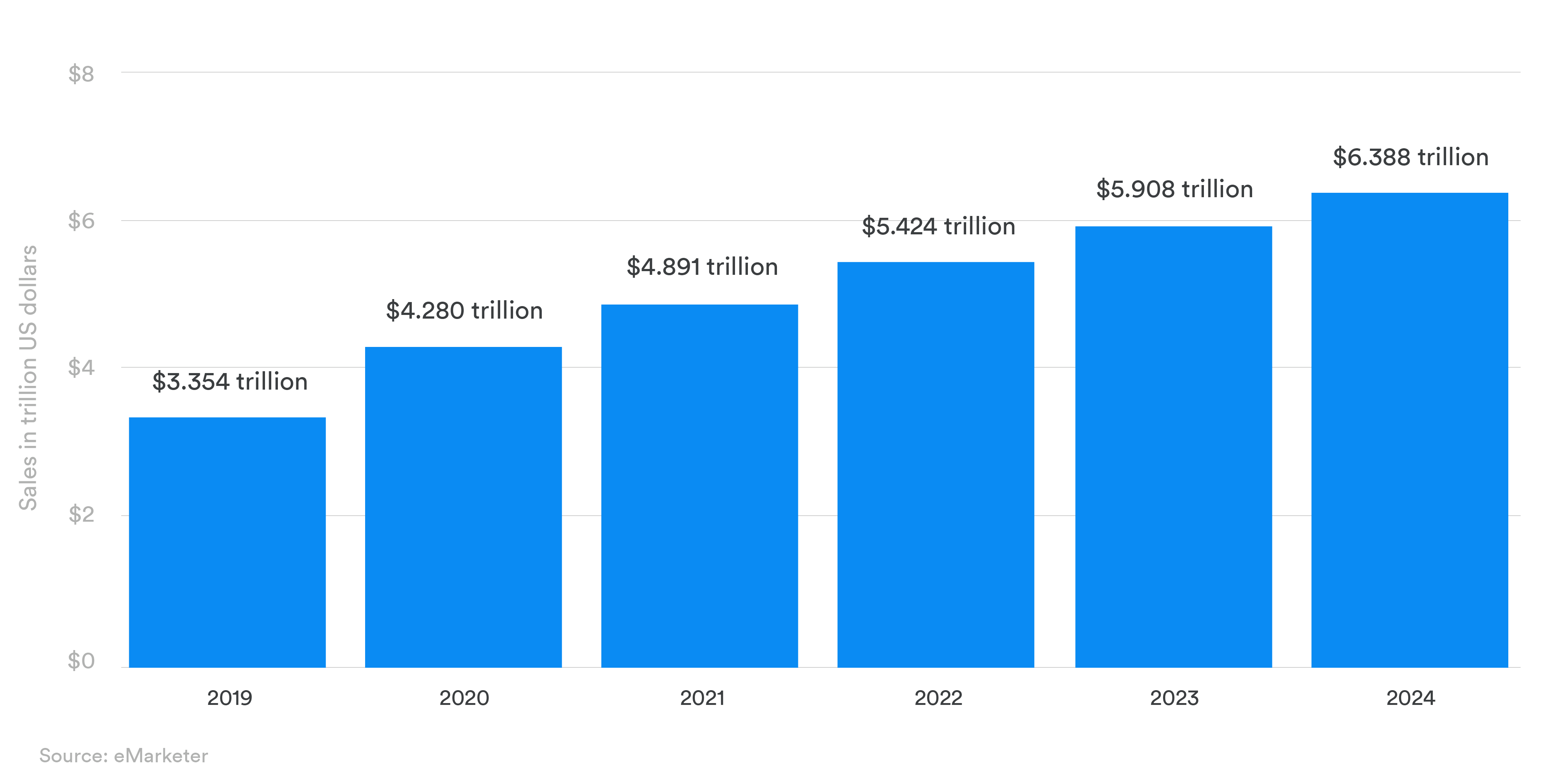 Ciononostante, dopo aver registrato vendite stimate a $ 4,28 trilioni nel 2020, le vendite B2C sono previste in ulteriore crescita nei prossimi anni.