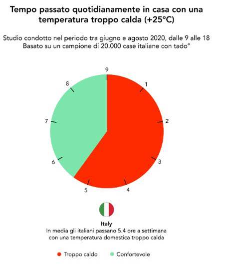 A causa dell’impatto di COVID-19, oltre 6 milioni di persone in Italia hanno lavorato da casa durante il 2020, dato cresciuto esponenzialmente rispetto al 2019 quando si contavano circa 570.000 smart worker italiani. L’aumento del tempo trascorso in casa in estate, e soprattutto dell’home working, ha portato ad una significativa crescita delle ore passate a lavorare ad una temperatura troppo calda. Infatti, l’aria condizionata è diffusa negli uffici, ma non tutte le abitazioni private ne sono ancora dotate. Per questo motivo, il nuovo studio di tado° mostra che nell’estate del 2020 gli italiani hanno trascorso una media di 5,4 ore a settimana con una temperatura scorretta, di 25° o superiore.
