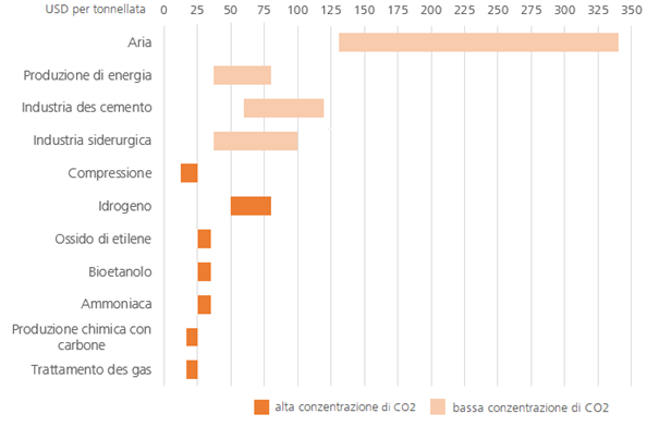 Costi di cattura del CO2 senza trasporto e stoccaggio