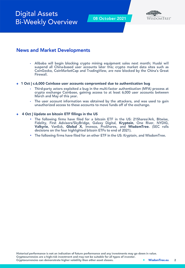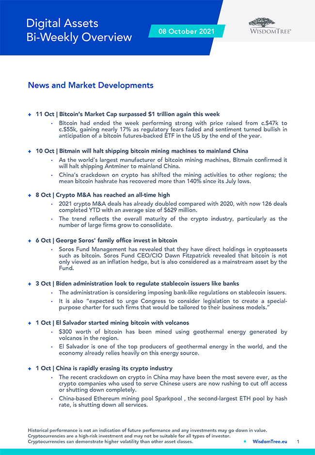 WisdomTree – BiWeekly “Digital asset” Overview – 8 ott 2021