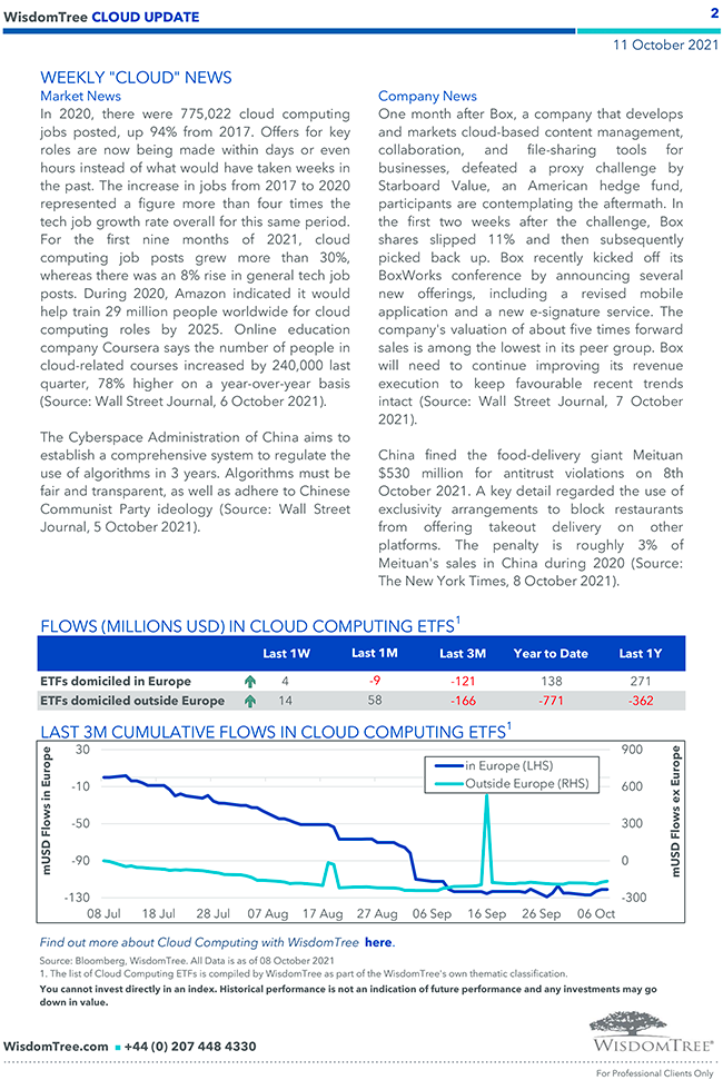WisdomTree – Weekly “Cloud” Update – 11 ott 2021