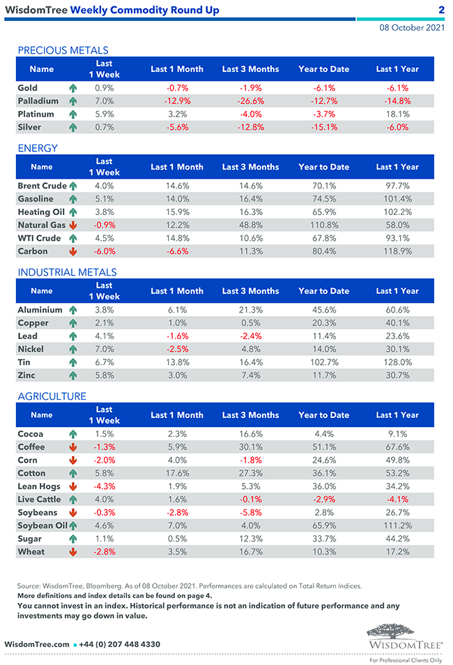 WisdomTree – Weekly “Commodity” Round Up – 8 ott 2021