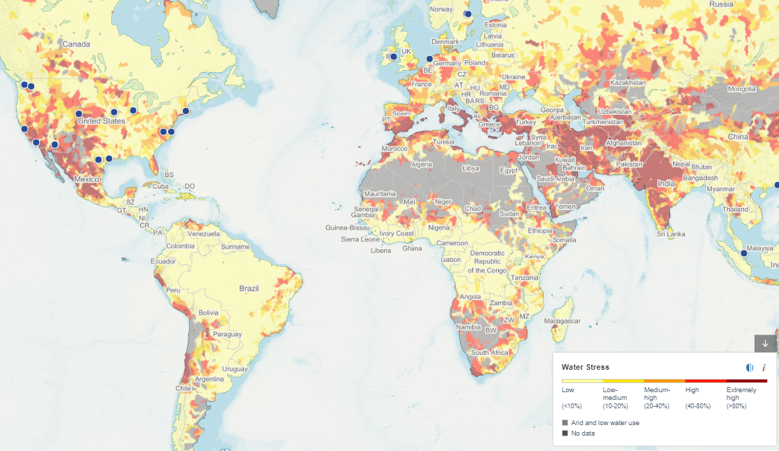 Source: World Resources Institute – Aqueduct Tool – Water Stress exposure analysis