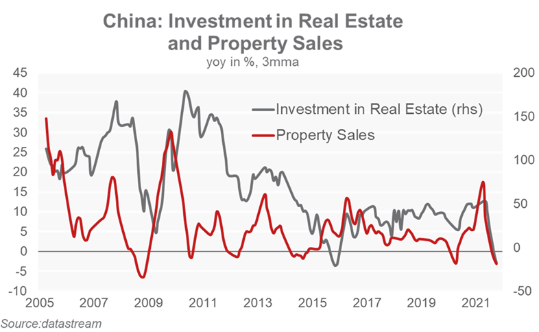 I dati di ottobre sull’attività in Cina hanno registrato un moderato miglioramento, tranne che per il settore immobiliare. La produzione industriale è rimbalzata, non da ultimo aiutata dalle ancora forti esportazioni, mentre le vendite al dettaglio hanno risentito meno dei recenti lockdown. Anche la crescita complessiva del social financing ha cessato di diminuire. Tuttavia il settore immobiliare resta un fattore di preoccupazione, con gli investimenti e le vendite immobiliari ulteriormente calati. L’inflazione dei prezzi delle case si è ammorbidita al livello più basso dall’inizio del 2016. Anche se gli investimenti immobiliari complessivi dovrebbero ancora avanzare del 5% quest’anno, il settore potrebbe diventare un forte freno alla crescita il prossimo anno.