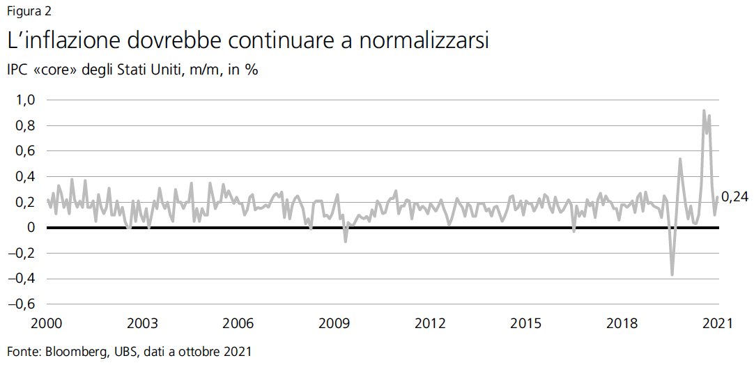Il caro-energia e le attuali difficoltà sul mercato del lavoro sono di carattere temporaneo e non costituiscono ostacoli strutturali alla crescita. Al momento le aspettative d’inflazione sono in aumento e le proiezioni di espansione economica vengono abbassate a breve termine, ma per il 2022 prevediamo una crescita ancora robusta, anche se in decelerazione, e un calo dei tassi d’inflazione, che daranno sostegno ai mercati azionari.