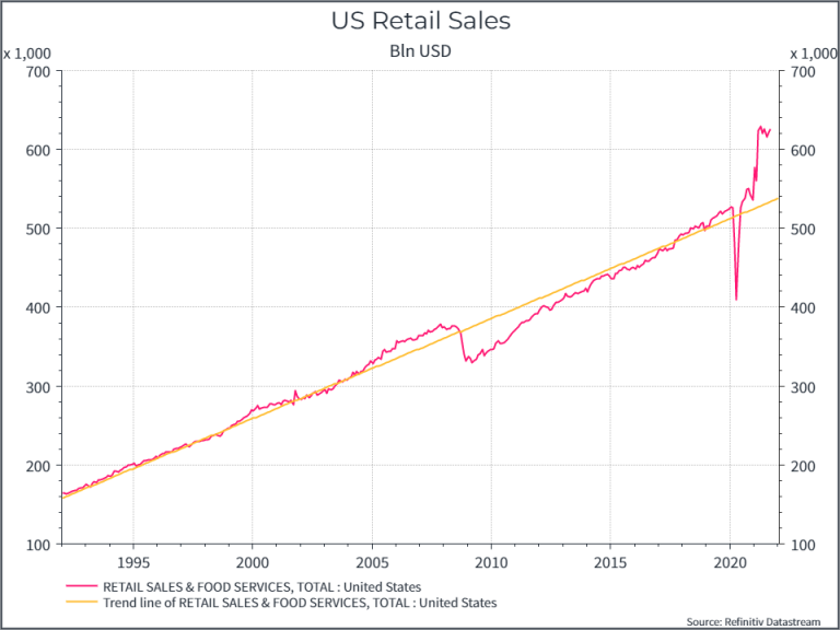 Ma il Covid ha portato uno shock significativo, prima in termini di crollo della domanda e poi, in modo sorprendentemente rapido, verso un livello più elevato di vendite al dettaglio: un cambiamento di passo che, finora, non si è davvero normalizzato verso la tendenza a lungo termine.