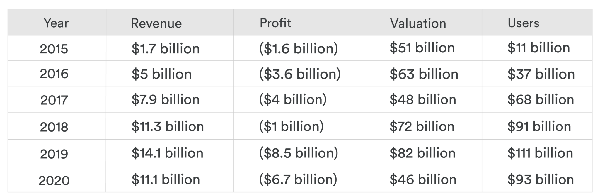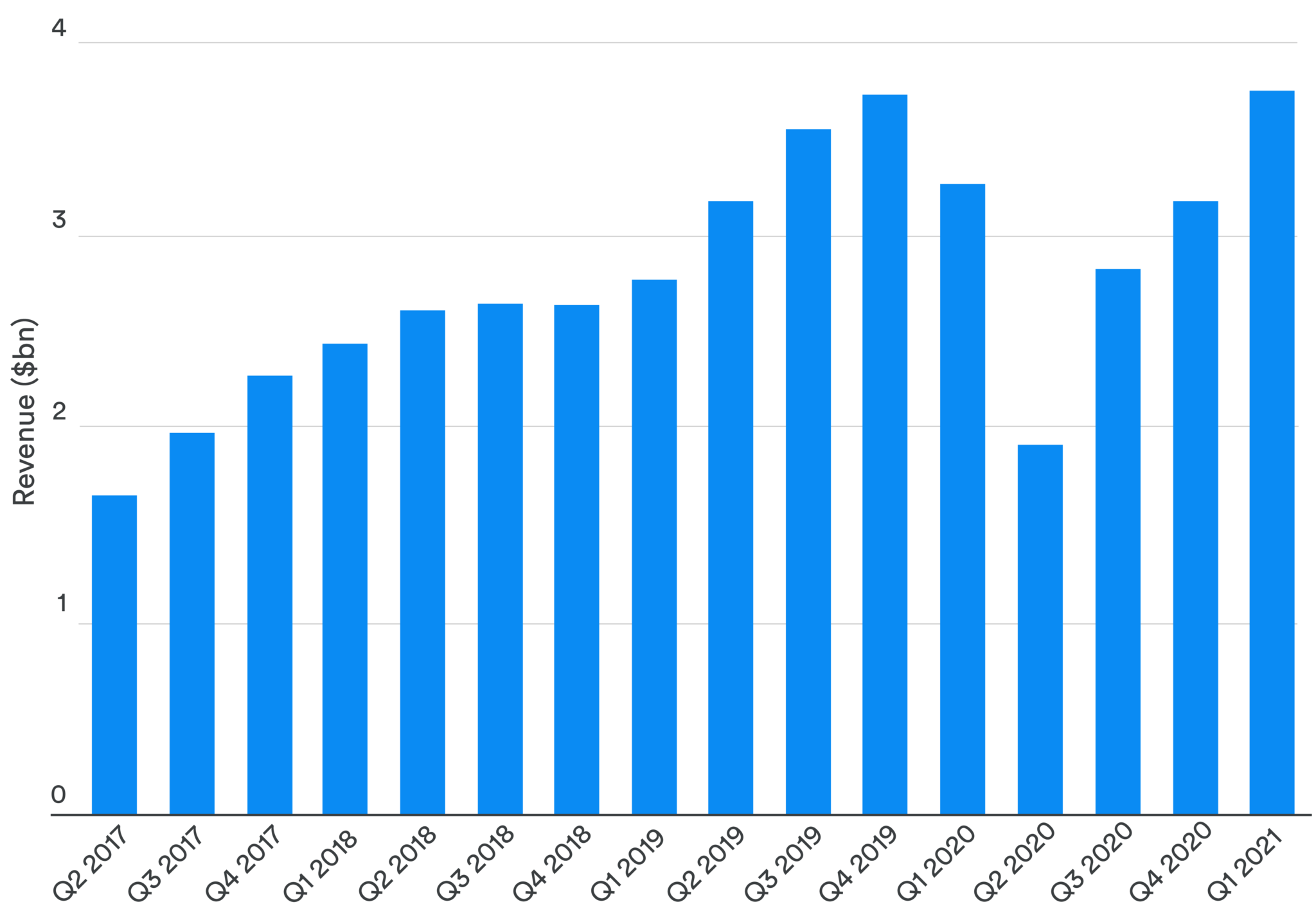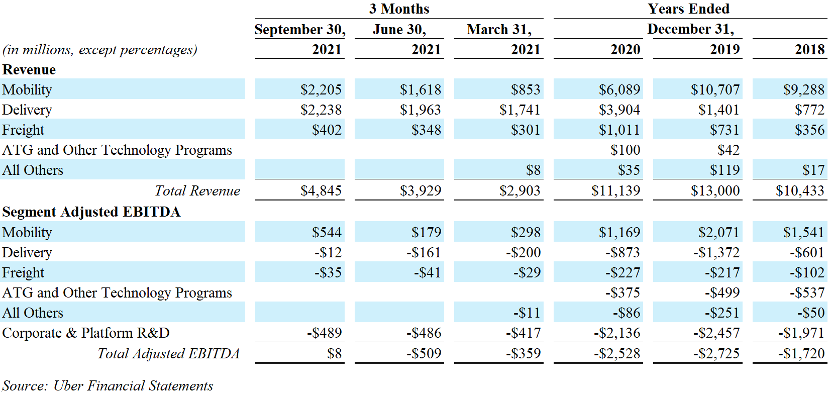 In termini di fatturato, Uber si è ripresa dall’effetto della pandemia, mostrando una tendenza al rialzo dal terzo trimestre del 2020 in poi.