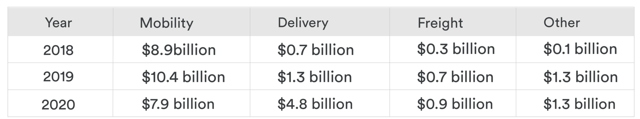 Sotto il CEO Travis Kalanick, dal 2010 al 2017 la società ha lanciato “Eats” (un servizio di food delivery), “Freight” e un’unità di veicoli autonomi (Advanced Technologies Group o “ATG”).