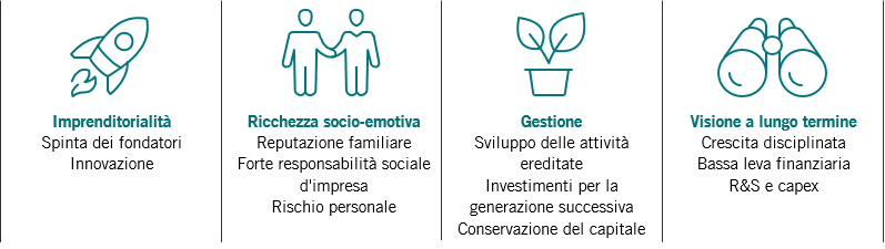 Riteniamo che ci siano tre motivi fondamentali. Innanzitutto, visto che solitamente le famiglie investono nelle aziende gran parte della propria ricchezza e della propria reputazione, gli interessi sono fortemente allineati. Questo, a sua volta, porta al secondo motivo: rispetto alle loro omologhe, le aziende a conduzione familiare spesso reinvestono nell’attività una quota maggiore dei loro profitti. Infine, la stabilità della proprietà consente al management di assumere una prospettiva di lungo termine, invece di concentrarsi in modo ossessivo sui profitti del prossimo trimestre.