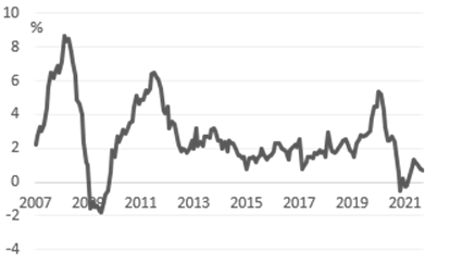 Allo stesso tempo, l’andamento dell’inflazione nella categoria più importante, cioè i prodotti alimentari (contributo del 29%) non ha finora mostrato alcuna decisa tendenza al rialzo. Questo quadro potrebbe però invertirsi a breve, per almeno due ragioni. In primo luogo, a livello aggregato, l’inflazione dei prezzi alla produzione in Cina è passata da un minimo di -3,6% a giugno 2020 a un recente massimo del 10,7% a settembre 2021. Con poche eccezioni, i prezzi alla produzione e al consumo hanno storicamente avuto la tendenza a muoversi in tandem, il che implica che prezzi alla produzione più alti potrebbero alla fine portare a prezzi al consumo più alti.