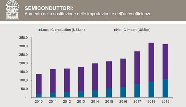 Fonte: China Semiconductor Industry Association. Dati a fine maggio 2019. IC = circuiti integrati
