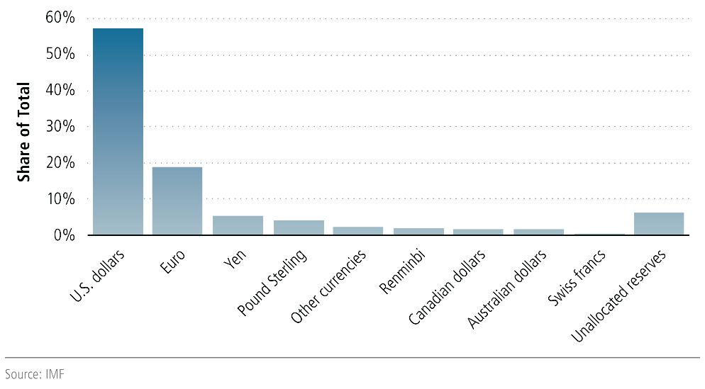 Piuttosto che titoli fantasiosi che propagandano la fine del dominio del dollaro a causa del deficit delle partite correnti, potrebbe essere più produttivo per gli investitori considerare se e cosa possa davvero minacciare il dominio del dollaro. Chi – o cosa – verrà dopo? Per ora, con gli Stati Uniti come prima destinazione per i capitali globali e la Federal Reserve disposta e capace di sostenere il sistema del dollaro, il ruolo dominante di questa valuta sembra saldo.