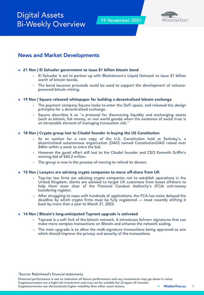 WisdomTree – BiWeekly “Digital asset” Overview – 19 nov 2021