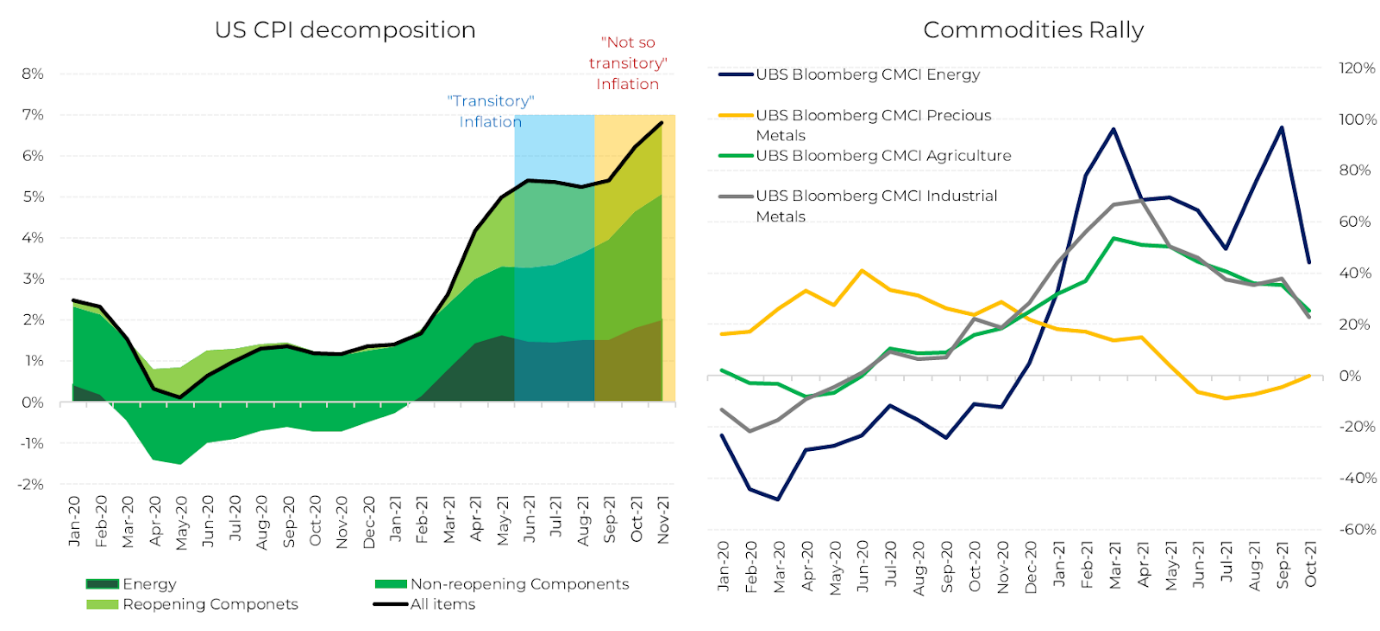 Nella seconda metà dell’anno l’inflazione è diventata un tema caldo. All’inizio si pensava si trattasse di un fenomeno transitorio, frutto di un’illusione ottica dovuta all’effetto base condizionato dalla depressione dei prezzi durante i mesi del lockdown.