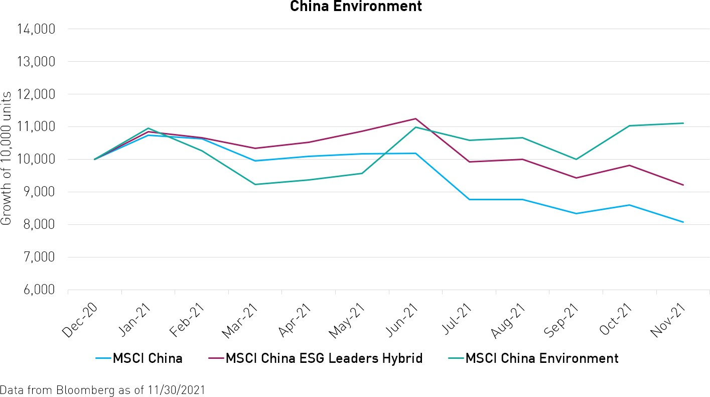 Piattaforme come Alibaba, Tencent, Meituan e altre si classificano molto bene secondo i criteri ESG di MSCI e dominano le prime posizioni nell’indice MSCI China ESG Leaders. Tuttavia, la performance relativamente scarsa delle piattaforme internet nel 2021 è stata compensata dalla performance veramente considerevole delle società di clean technology e di veicoli elettrici.