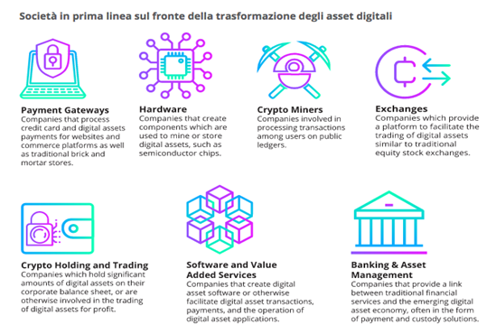 Riteniamo che un’ampia pipeline di società di abilitazione delle criptovalute si stia preparando a quotarsi in Borsa e che il 2022 continuerà la tendenza stabilita dalle società di nuova quotazione nel 2021. La gamma di attività a cui le società di criptovalute possono partecipare è molto ampia: dagli exchange ai miner di asset digitali alle società di pagamento. Poiché il mercato delle criptovalute continua a crescere e svilupparsi, prevediamo che il mercato cresca con nuove quotazioni e che si verifichino anche cambiamenti man mano che le società si aggiudicheranno o perderanno quote di mercato.