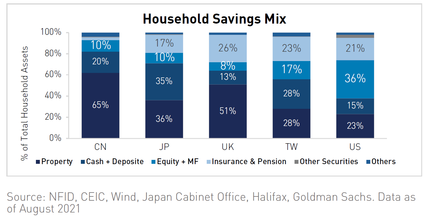 Per gli investitori cinesi, gli investimenti immobiliari costituiscono la maggior parte degli asset all’interno di un portafoglio tipo. Per quelli internazionali invece, le restrizioni all’accesso e la bassa inclusione delle A-shares negli indici globali limitano la possibilità di aumentare le allocazioni.