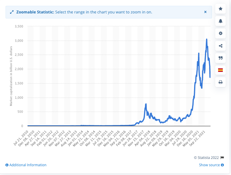 Fonte: Statista.com – Capitalizzazione di mercato totale della crypto