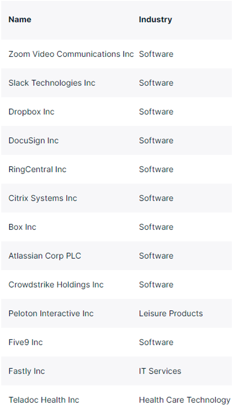 Di seguito la lista dei titoli WFH tra i più negoziati degli ultimi due anni: