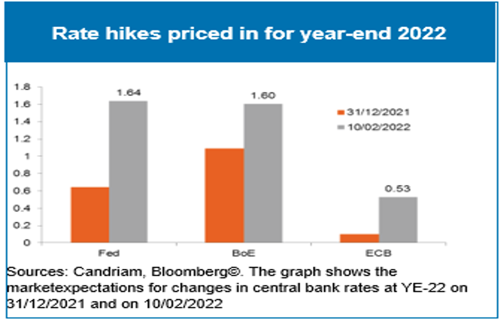 Già nel nostro Outlook per il primo trimestre del 2022 avevamo previsto la necessità di affrontare l’incertezza andando verso un mondo post-Covid. Chiaramente, la guidance delle banche centrali in merito alle loro reazioni future ha aggiunto ulteriore incertezza a quella già esistente legata a un’inflazione più alta del previsto. Di conseguenza, l’orizzonte d’investimento si è improvvisamente accorciato, portando al sell-off dei titoli a lunga duration, ampiamente detenuti. Per farla breve, ci saranno molte occasioni per i mercati finanziari di valutare e rivalutare gli scenari fino a quando la BCE (10 marzo) e la Fed (16 marzo) si riuniranno nuovamente per annunciare le loro azioni.