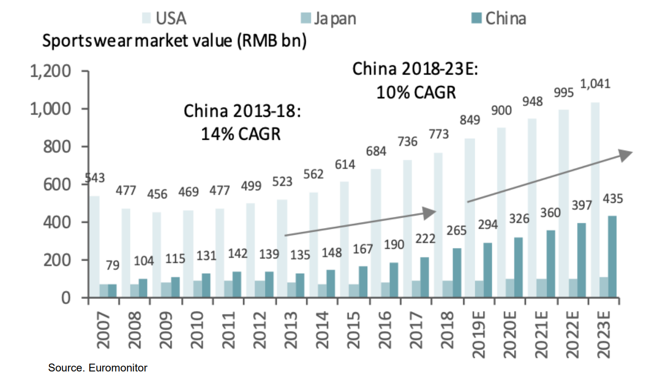 Il settore dello sportwear cinese è una rara combinazione di (1) crescita elevata, (2) grande dimensione del mercato interno e (3) rapido ritmo di consolidamento del settore:
