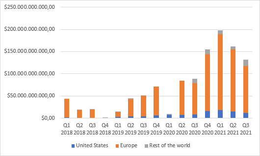 La crescente popolarità degli investimenti Esg si riflette negli asset confluiti sui fondi sostenibili globali, con flussi che hanno superato i 134 miliardi di dollari nel terzo trimestre del 2021. Sebbene inferiore ai 158 miliardi di dollari del trimestre precedente, la cifra è ben al di sopra degli 89 miliardi di dollari registrati nel terzo trimestre del 2020. I flussi sostenibili globali complessivi per i primi tre trimestri del 2021 hanno inoltre già superato i flussi totali dell’intero 2020.