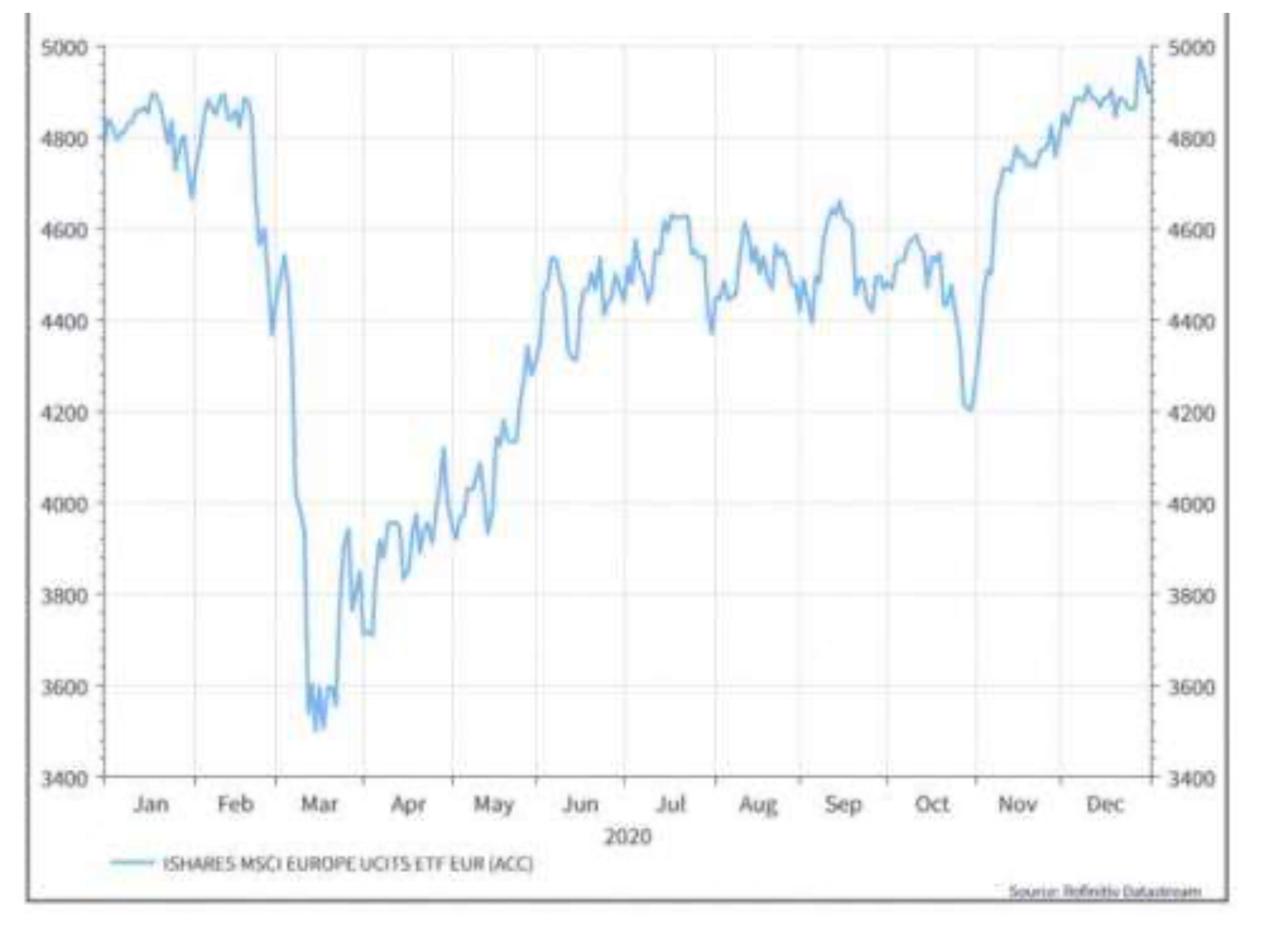 La storia sembra quindi destinata a ripetersi, anche se in modo forse meno evidente, quando si guarda all’attuale performance dell’Etf dei mercati azionari europei.